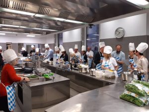 Sapientemente guidati da uno chef professionista il gruppo di 15 giornalisti si è potuto cimentare nella preparazione di piatti fusion contenenti i prodotti delle sei aziende bavaresi presenti nella collettiva bavarese a Tuttofood.